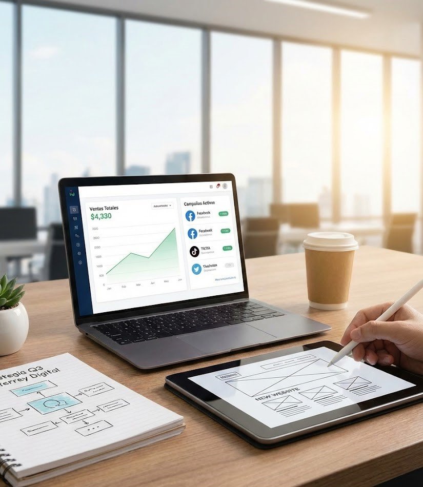 En Monterrey Digital, no solo diseñamos sitios web; construimos máquinas de ventas. Entendemos que como dueño de negocio, tu prioridad no es tener “likes”, sino tener clientes. Nos dedicamos a transformar tu presencia online en una herramienta rentable que trabaje para ti 24/7, atrayendo prospectos calificados interesados realmente en lo que vendes.